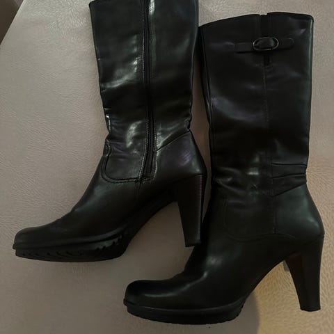 Muutaman kerran käytetty joten hyvässä kunnossa. Pohkeista reilut ja vähän rypytetty varsi. Tulevat korot ja pehmeä vuori.