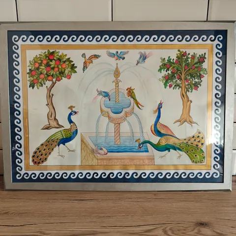 Tauluissa samettinen ripustin isolla metallirenkaalla