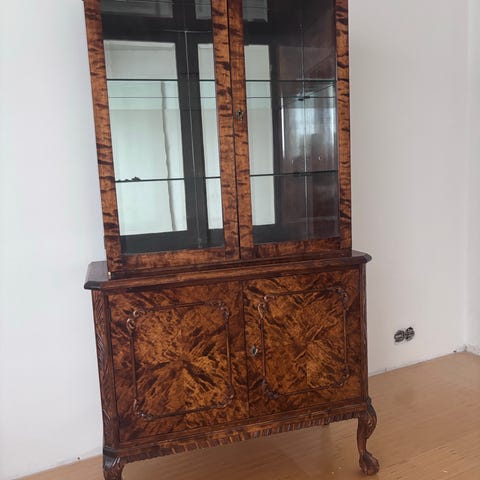 An exquisite vintage display cabinet is up for sale! This piece catches the eye with its unique design, perfect for antique enthusiasts. It features wooden details and a sturdy build and offers both elegance and practicality. Add a nostalgic touch to your interior with this charming cabinet, ideal for home or office use