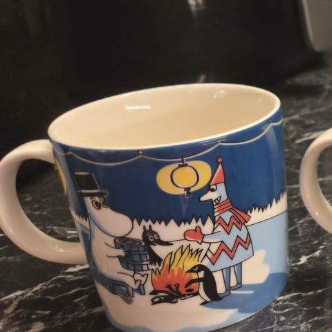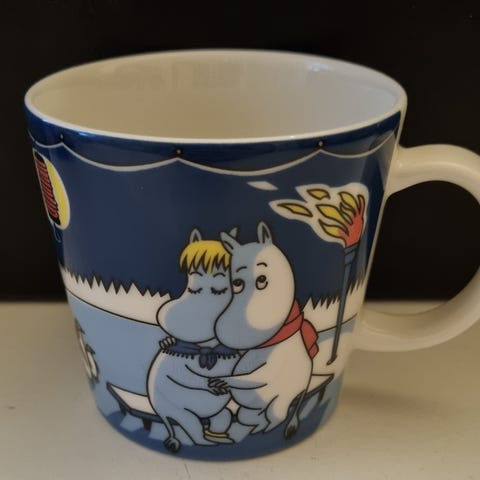 Hyväkuntoinen muumimuki talvinuotio 2008