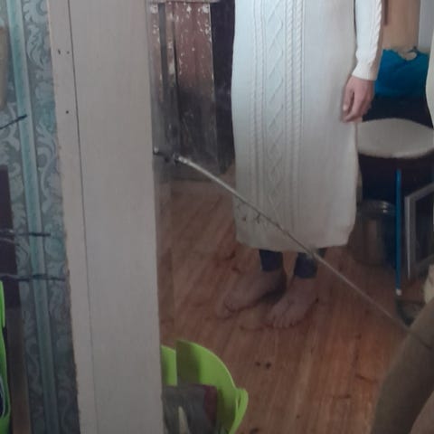 Hameessa on vyötäröllä kuminauha, hameen pituus on 58 cm. Puseron pituus kainalosta 54 cm. Hyvin joustava ja mukava päällä. Juuri pesty!! Ei eläimiä, ei tupakkaa.