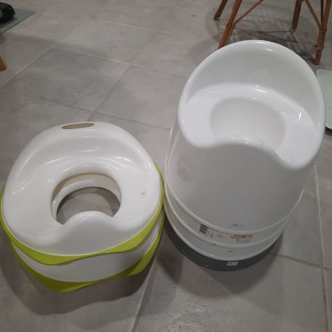 Harmaa potta ja valkoinen wc istuimen supistaja