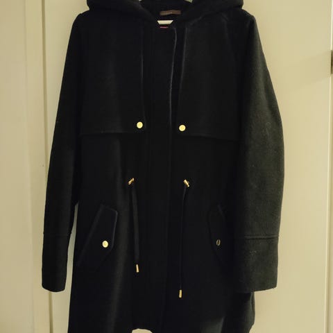Noisy Mayn lämmin villakangastakki tekonahkaisilla hihoilla. Kauluksessa vetoketjukoriste.