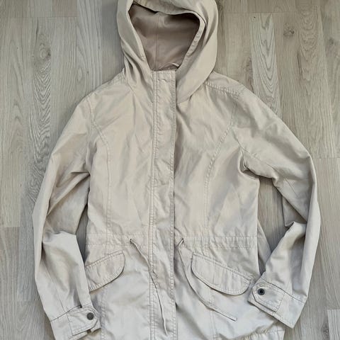 Kevytvuorinen,päällä mukava takki. Ehjä ja nätti,tykätty takki joka jäänyt pieneksi. Pesty.