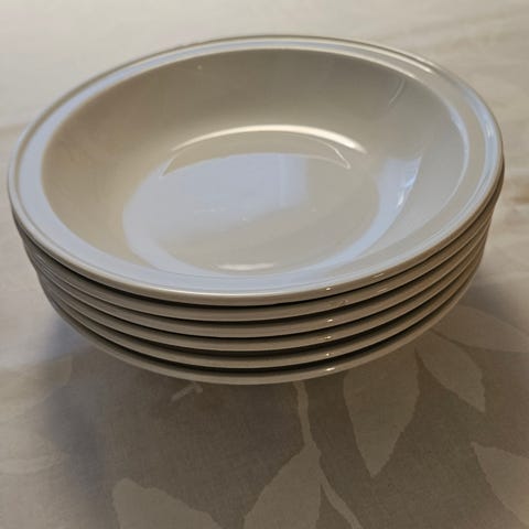 Retro Torgau GDR keraamiset syvät lautaset. 4 lautasista täysin ehjät, yhden lautasen pohjassa pari palaa lohjennut lautasen alapuolelta (katso kuva). Lautaset ovat käytettyjä ja niissä jonkun verran käytön jälkiä ja pientä kulumaa on, mutta yleisilme hyvinkin siisti.