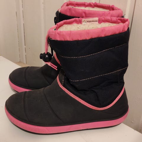 Myydään Lassie merkkiset talvikengät.Koko 32,täysin ehjät,vuori on hyvässä kunnossa ja ei tahroja .Kengän varren suussa kiristysnauhat lukkoineen.