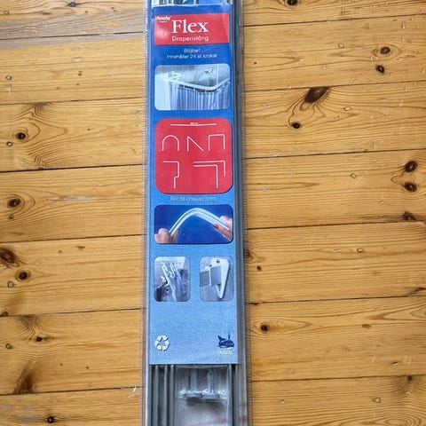 Ikean Vikarn-suihkuverhotanko. Yksi kulmapala ei kuulu pakettiin, eli ei sovellu U-muotoiseen tarpeeseen. Käyttämätön.
