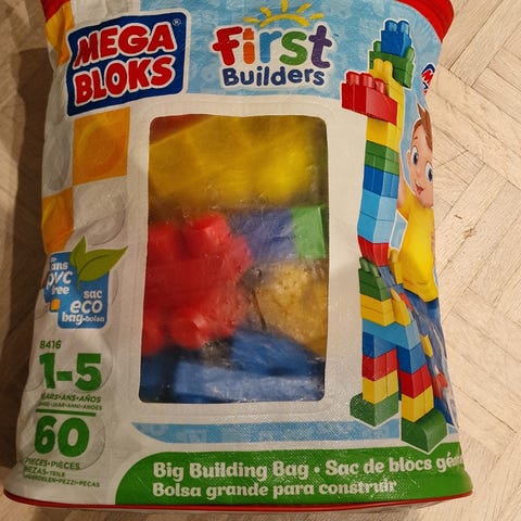 A bag + one box Mega Bloks toys, suitable for 1 - 5 years old kids