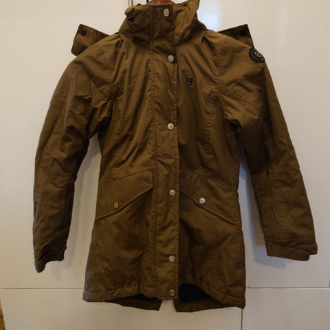 Takki on hieman alaspäin levenevä. Hupussa irroitettava karvareunus.