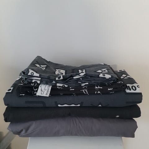 Ihana pirteä vedenvihreä pussilakanasetti, 2 kpl pussilakanaa 150*200 cm ja 4 kpl tyynyliinoja 50*60 cm. Toinen puoli pussilakanasta valko-vihreä ja toinen puoli vihree-valkea. Yhteensä 15 €.