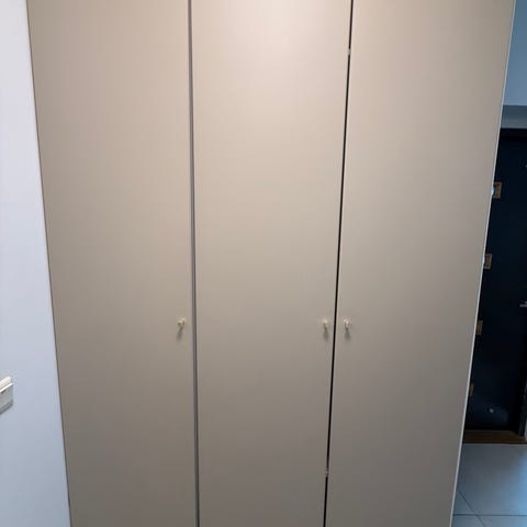 Kahdessa muussa ovessa Ikean musta pitkänmallinen vedin.
