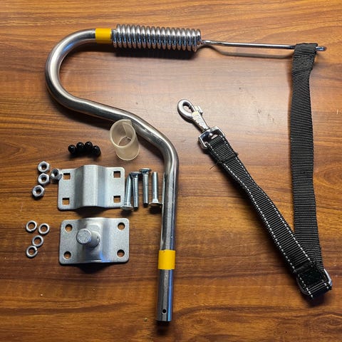Polkupyörään muttereilla kiinnitettävä koirantalutin.