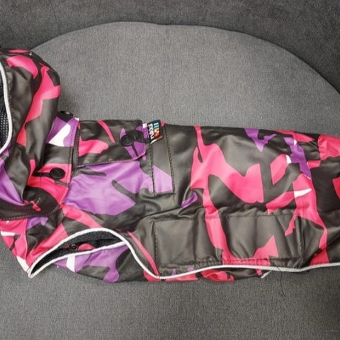 Laput irroitettu, mutta ei mielestäni pidetty heijastava sadetakki/ sade mantteli. Valjaille aukko selässä. Lukot toimivat
