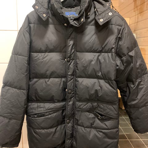 lämmin, musta, lantiokiristysnauha ei uudenveroinen, takissa ei reikiä, huppu vetoketjullla