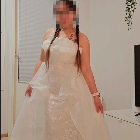 Tilattu koossa 54, mutta ompelija tehnyt muutoksia yläosaan, jotta oli sopiva minulle koossa 52.