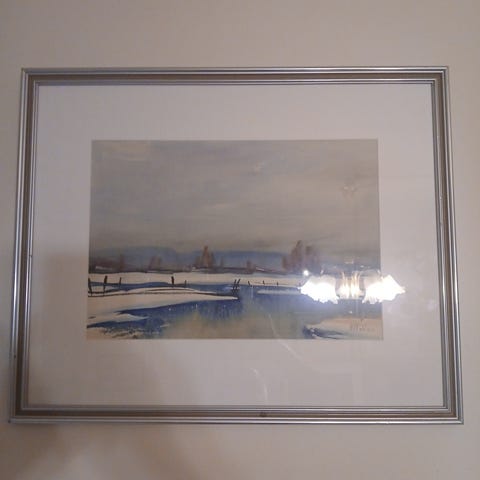 Lauri Mäkinen (Orivesi) akvarelli mitat kehysten päältä korkeus n.34cm leveys n.46,5cm kuva-aukko n19,5x29cm