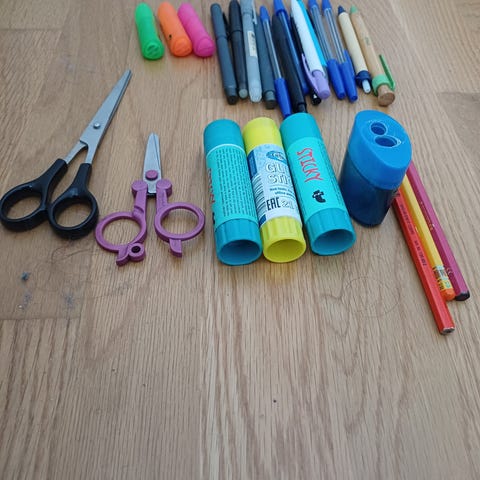 Avaamattomat askartelusetit. Hinta 1 €/kpl.