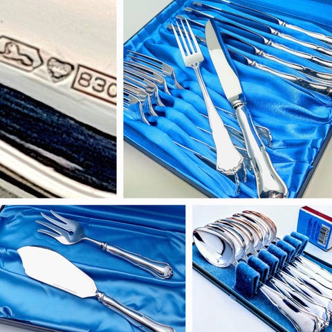 Chippendale, KULTAKESKUS, 24-os. hopeiset aterinet, säilytyskotelo. Priimat