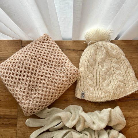 Myydään hyväkuntoiset lapaset ja hyväkuntoisia pipoja.