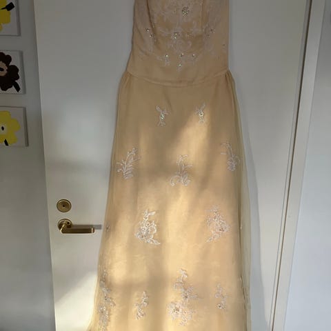 Kullanruskea vanhojentanssimekko. Tanssittu yhdet tanssit, joten hyvässä kunnossa, ei mitään moitteita.