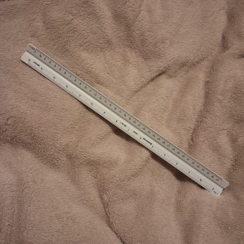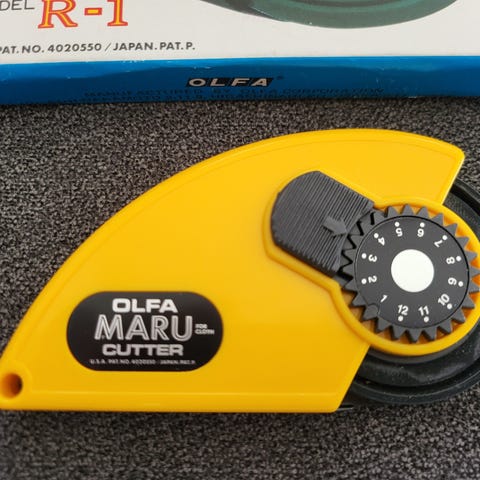 Vähän käytetty viivainleikkuri, leikattu keinonahkaa.