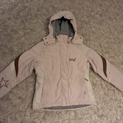 Takissa helmakiristys, taskut, irrotettava huppu, hyväkuntoinen.