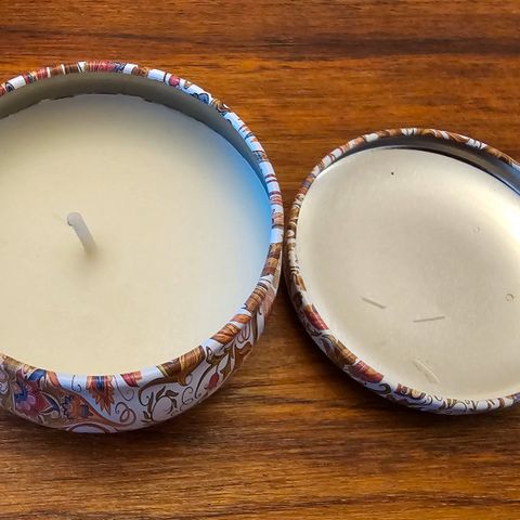 Kaunis kynttilä, jonka korkeus 12cm ja leveys 8cm.