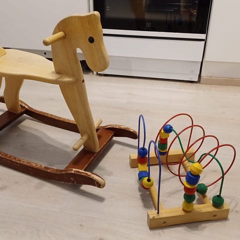 Vaalea pehmolelu keinuhevos-helistin vauvan ensileluksi.
