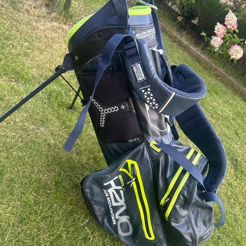 Hyväkuntoinen golfbägi, 5 mailasuuaukkoa, paljon taskuja, mukava kantaa. 78cm korkea.