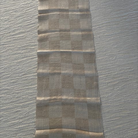 Valkoinen kirjonta ihanassa pellavakankaassa.