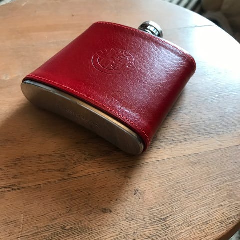 Hieno nahkapintainen, ruostymattomasta teräksestä valmistettu taskumatti.