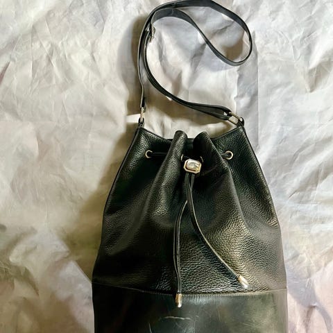 Katso hintoja: vintage suede bucket bag haulla.