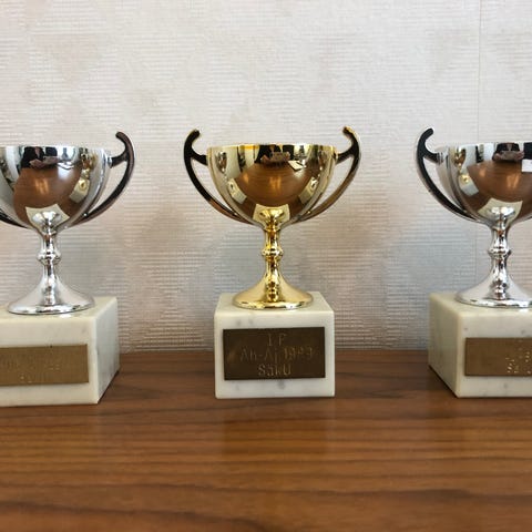 Suurimmat n. 35 cm korkeita. Yhteensä 40 kpl. Tulosta vain tarrat ja saat näistä näyttävät palkinnot kisoihin. Muutama pokaali käy vain pingiskisoihin palkinnoiksi tunnusten vuoksi, muut käy mihin vain lajiin. Osassa pokaaleista vähän hapettumaa, mutta nekin varmasti ainakin lapsille paljon mieluisampia kuin mitalit. Isot pokaalit uutena kymmenien eurojen arvoisia. Myyn pienemmänkin erän.