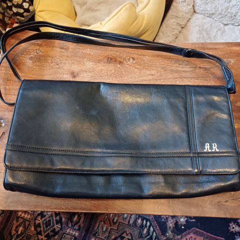 Myydään retrotyylinen, musta käsilaukku. Pinta pehmeää nahkajäljitelmää. Laukussa säädettävä olkahihna. Sisällä yksi vetoketjullinen tasku sekä kaksi avotaskua. Vetoketjukiinnitys.
