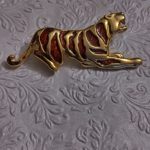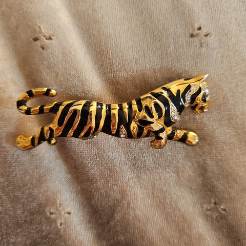 Rintakoru, rintaneula, vintage, tiikerinsilmä