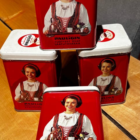 Ikäisekseen hyvässä kunnossa, mm. kansi saranoineen täysin toimiva. Voin lähettää kuluja vastaan. Katso myös toinen kahvipurkki myynnissä ja tee tarjous molemmista.