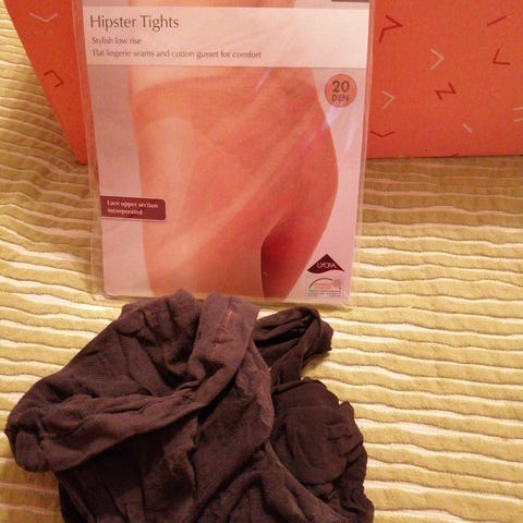Vaalean persikan väriset sukkahouusut, pieni haarakiila, 15-20den, koko n.36-38, laatikko hävinnyt, niin ei ole tarkkoja tietoja.