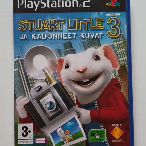 Stuart Little 2 PS1-peli. Peli on käytetty, toimii ja mukana on ohjekirja. Stuart Little 2 on seikkailupeli, jossa pelaaja auttaa Stuartia selviytymään haasteista ja ystävien pelastamisesta eri ympäristöissä.
