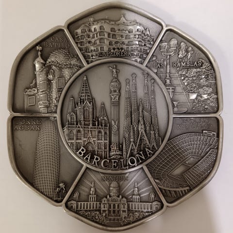 Metallilaatta kuvalla mittoja korkeus n.10cm leveys 9cm
