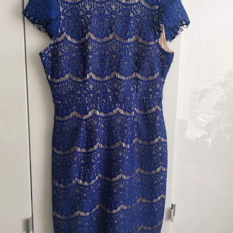 Tummansininen pitsikangas ja vuorikangas, läpinäkymätön.