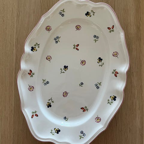 Tarpeettomaksi jäänyt otsikon mukainen tarjoiluastia. Hyvin vähäisellä käytöllä ollut. Koko n. 34 x 34 cm.