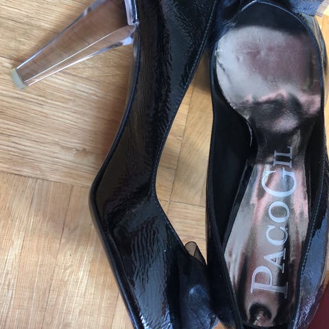 Kauniit mustat hyväkuntoiset nìittikoristeiset avokkaat 38.5. Itselle liian pienet. Pohjassa käytön jälkiä. TARJOA.