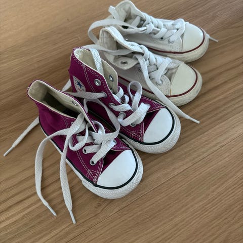 Converse tennarit. Pohjat hyvät, näillä ei ole paljon kävelty. Kärjet ja kantapäät hieman kuluneet.