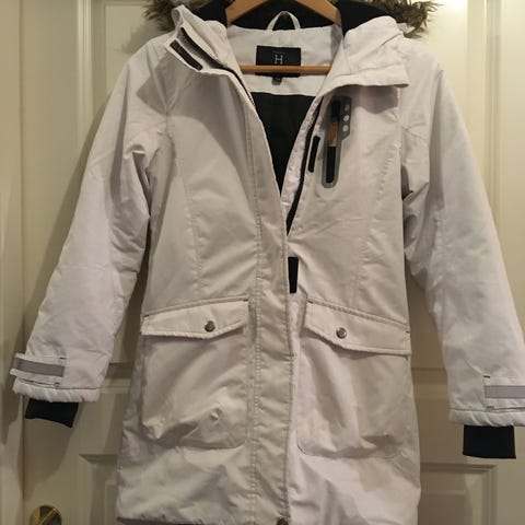 Siistikuntoinen talvitakki 140cm. Merkki H&M. Käytönjälkiä hieman. Huppu neppareilla.
