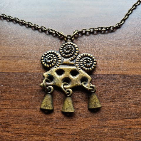 Myyntiin pronssinen kaulakoru, Karkun Palvialan riipus. Karkku on nykyisen Sastamalan alueella. Koru on Kalevala Korun perinteistä sarjaa. Kaulaketjun pituus on noin 68 cm.