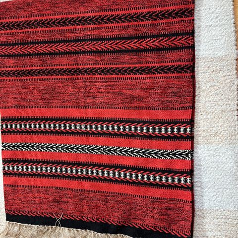 Mitta n. 157 x 58 cm. Villaa, kudottu.