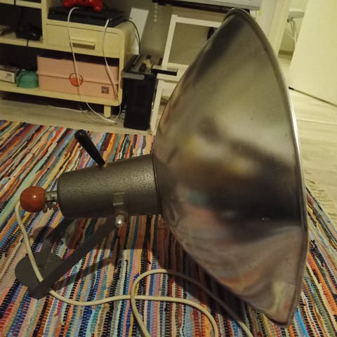 Vanha Nukkumatti valaisin. Väri vaaleansininen. Valaisimessa ei ole varjostinta tai johtoa. Korkeus 18 cm. Leima S. Postitus onnistuu.