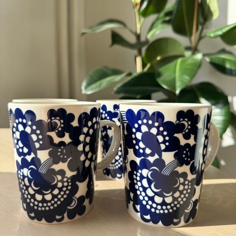 Kuin uusia Suomen itsenäisyyden satavuotisjuhlavuoden 2017 Esteri mukeja ja lautasia settinä 24e/setti(muki+lautanen).Myynnissä n 14kpl settii.