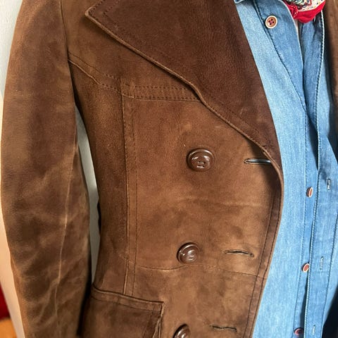 60-70 luvun vihreä mokkatakki. K-k 80cm, vyötärö 70cm. Tyköistuva