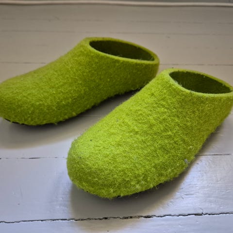 Uusia käsintehtyjä lasten huopatossuja. Sisäpituus n. 13 cm. Väreinä: tummanvihreä ja ruskea.